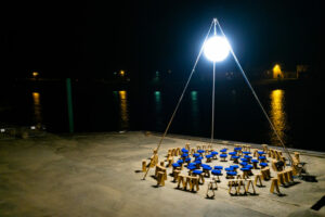 Deux femmes, deux langues vous invitent sous une bulle de lumière. La nuit, un ballon suspendu éclaire les visages. Deux comédiennes au centre, une centaine … Lire la suite de Tu es là